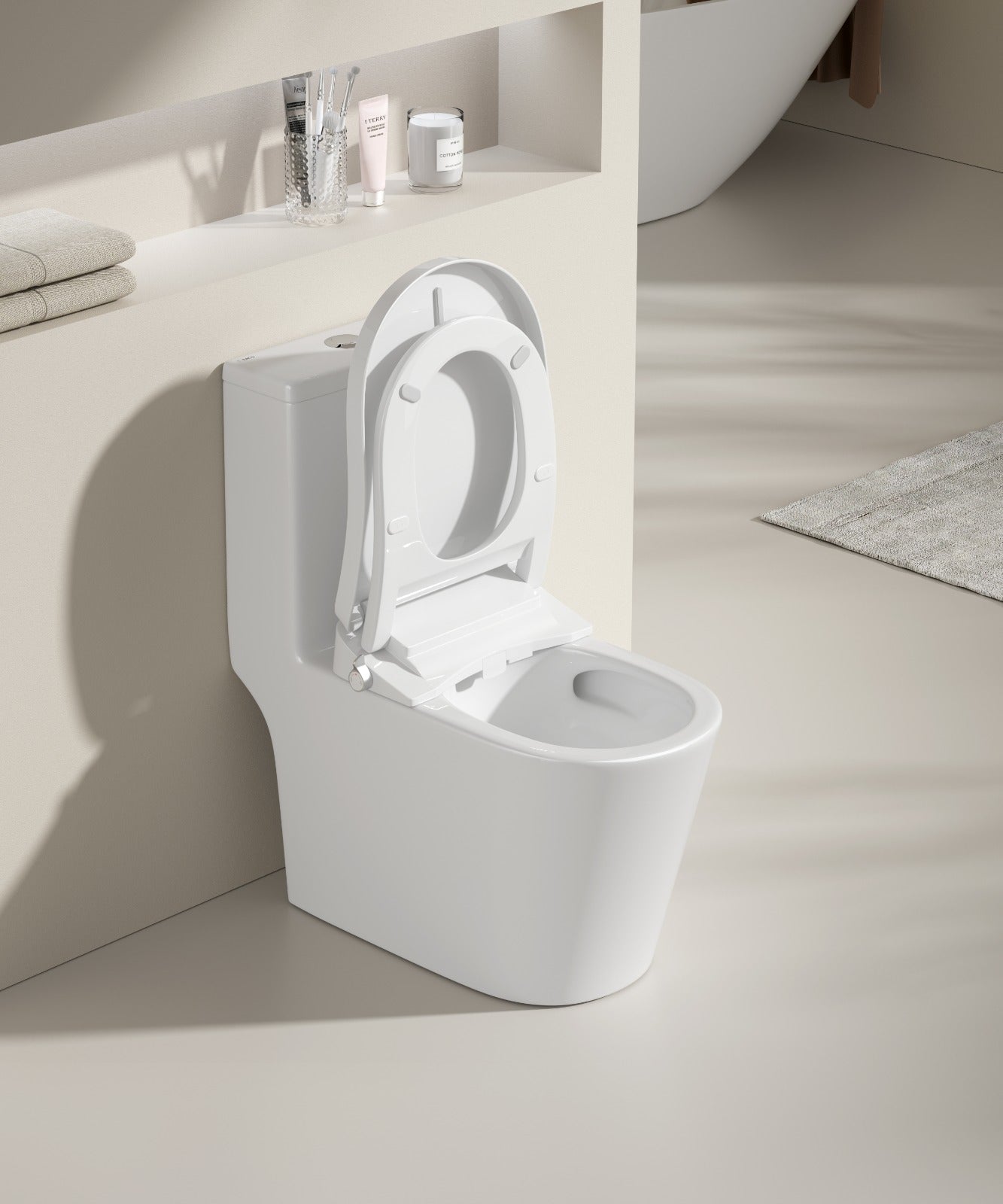 Rimless One-Piece Toilet that puts hygiene and efficiency first with no hidden...