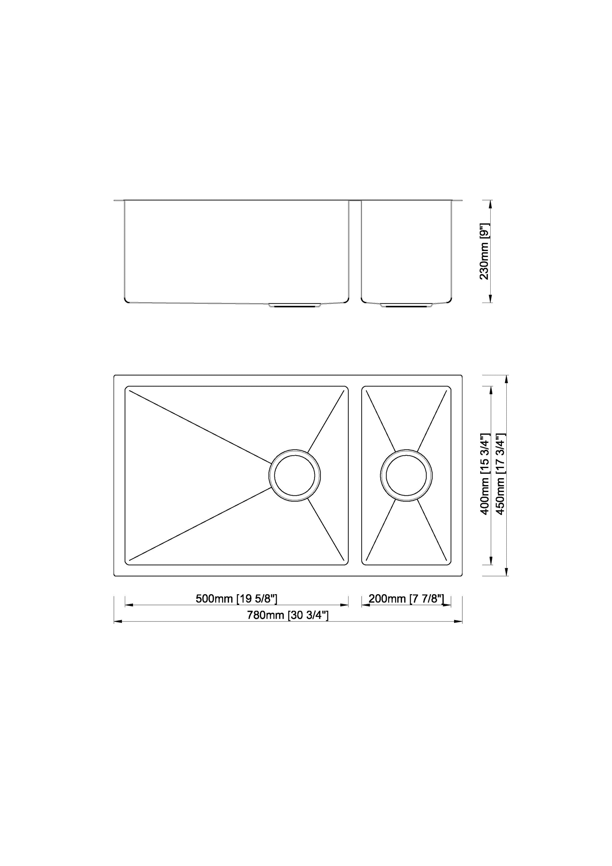 Bowl Size: (L) 500 X (W) 400 mm / (L) 200 X (W) 400 mm