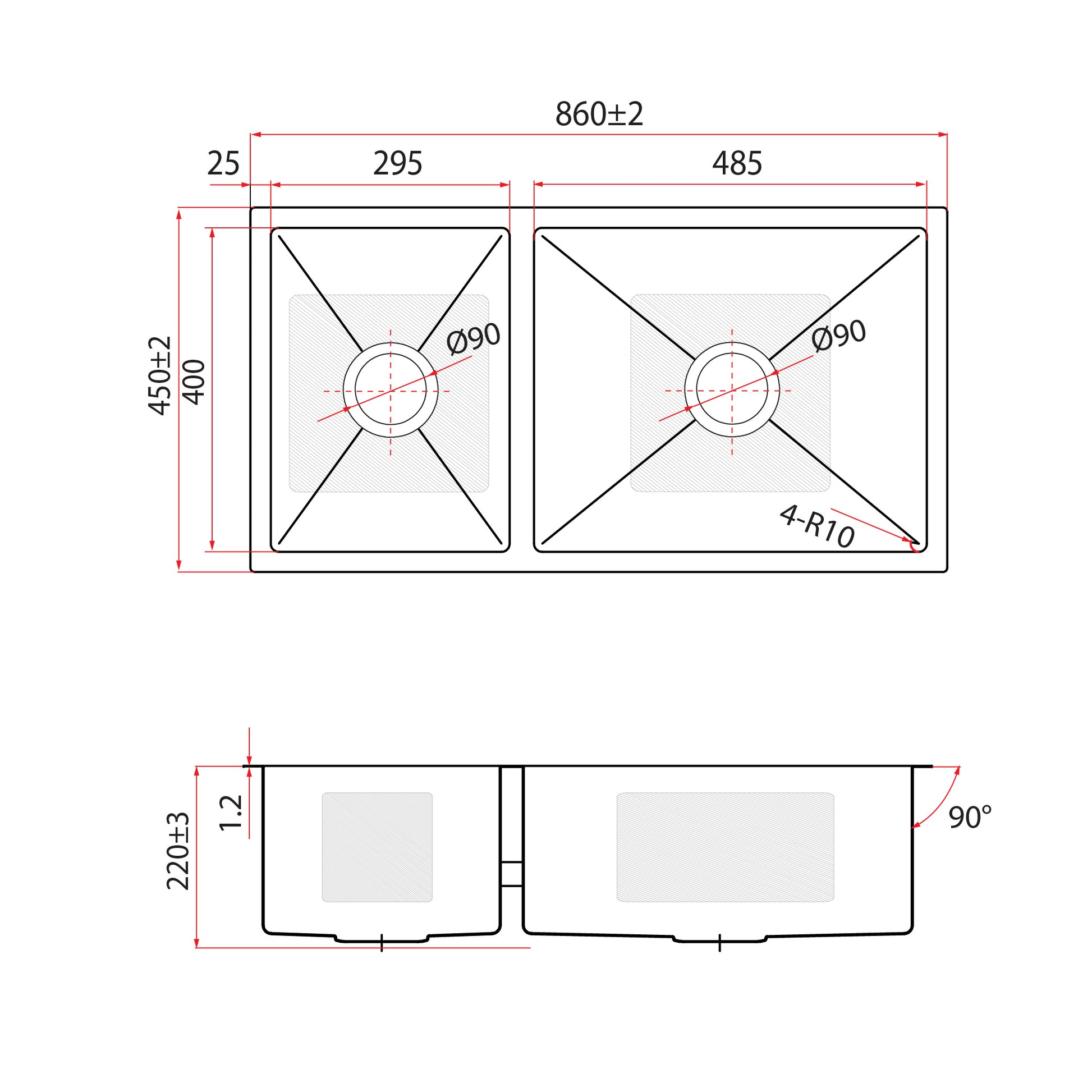 Bowl Dimension:295 x 400mm / 485 x 400